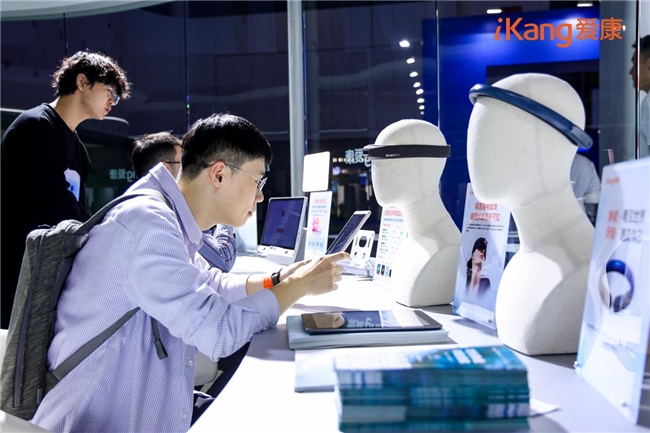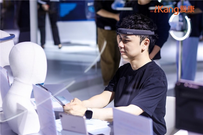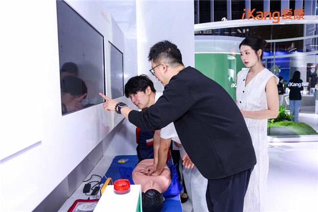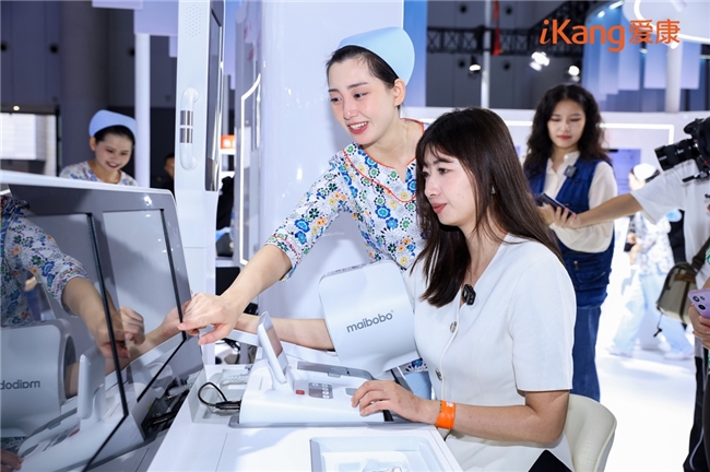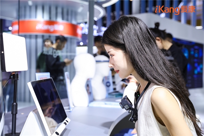 通过一张眼底照片可“预警”多种健康风险的视网膜AI评估技术、无需躺平就能监测动态心电的可穿戴智能心贴、能实现“千人千面”健康管理方案定制的AI健康管家iKKie、职场“精神状态”一测即知的AI抗压能力检测……从高效便捷的智能体检到全方位有温度的职场健康守护,沉浸式智能交互的“健康世界”看点与体验感拉满,吸引众多观众驻足并探索,前沿科技带给体检与健康管理的改变在零距离体验中触手可及。