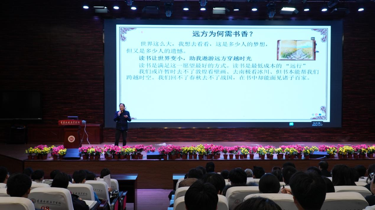 “读书是最低成本的‘远行’。我们或许暂时去不了敦煌看壁画、去不了南极看冰川,但书本能帮我们跨越时空;我们回不到春秋战国,却能在书中面见诸子百家。” 甘教授的话语掷地有声,令在场师生深受触动。