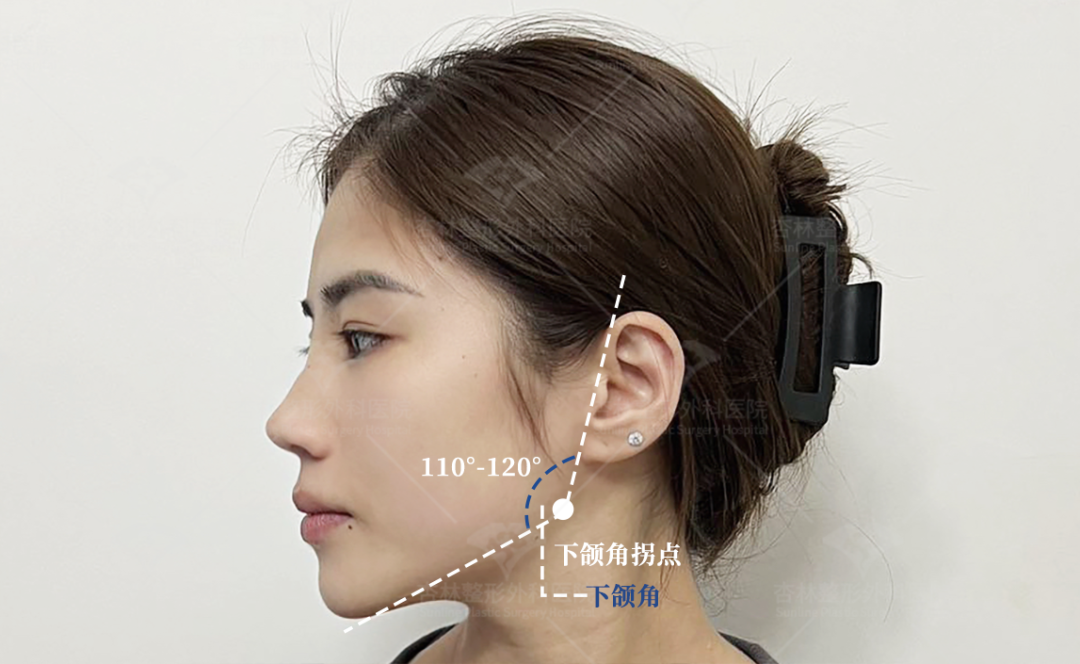 1️⃣好看的下颌角,从侧面看是120度左右,同时下颌角到耳根的距离在2cm左右。这样的下颌曲线会给人以柔和、自然的感觉。