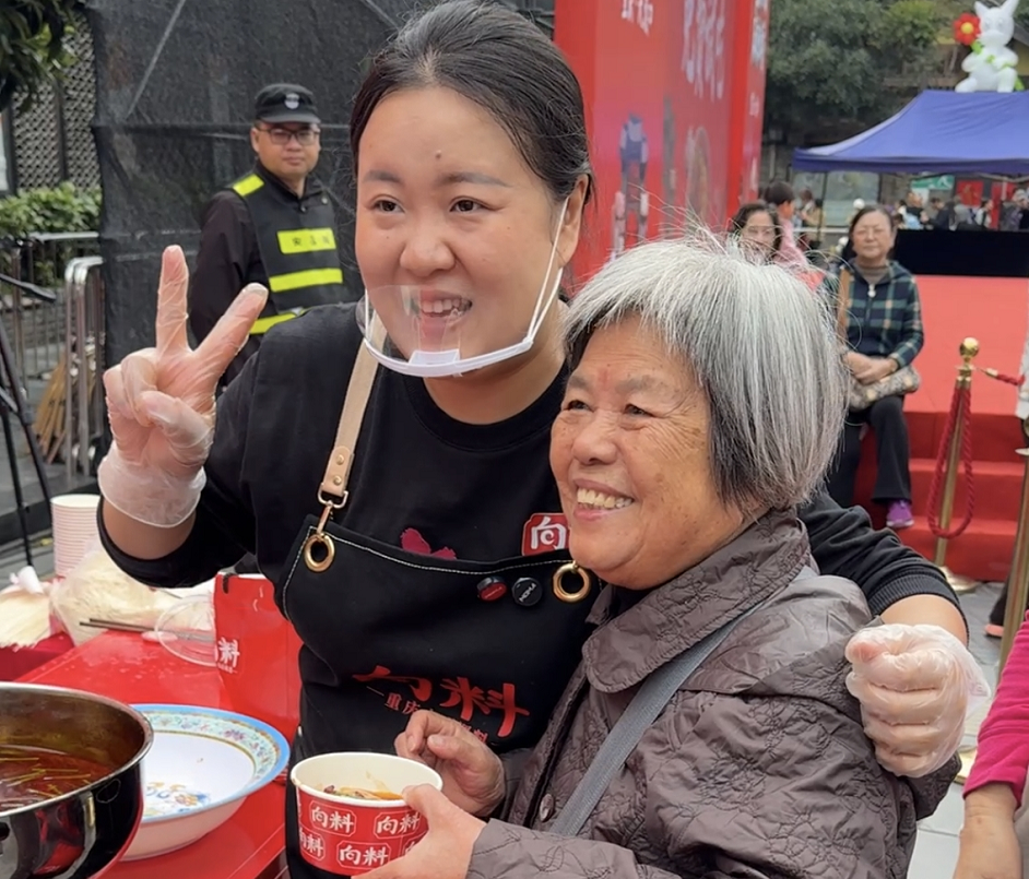 胖妹说到:“活动当天,有个九十多岁的婆婆知道我们向料全国行活动还要在成都多停留一天,专门喊她儿子带她来到现场,就为了看一眼,尝一口正宗重庆小面,拍个照留念,当时我就觉得非常感动,同时也更加坚定了我们要把‘这碗有温度的重庆小面’传递给更多消费者,让更多人真切感受到重庆小面的麻辣鲜香与匠心温度”。