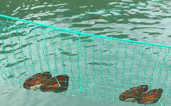 在这里,上千个白色浮标呈网格状排布,在水中微微起伏。浮标下悬着三角帆蚌苗,更深处游弋着鲢鱼,形成蚌滤水、鱼肥蚌的共生格局。