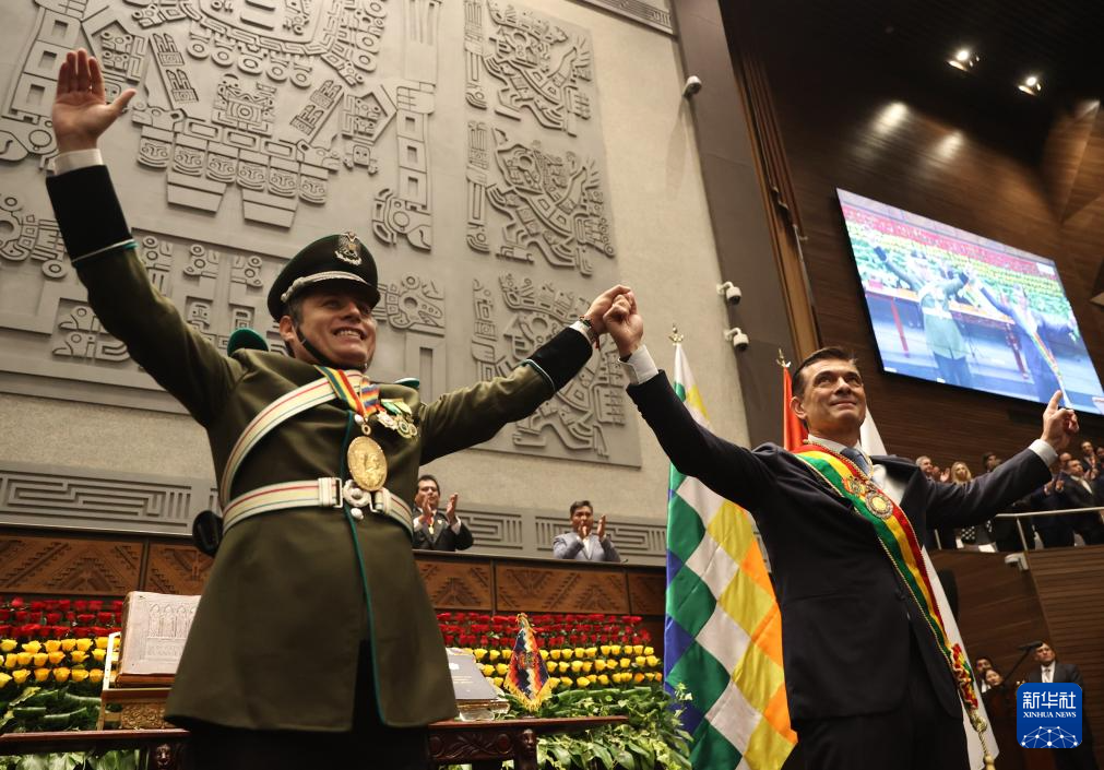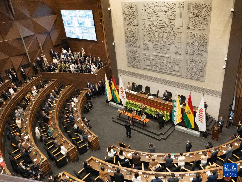 这是11月8日在玻利维亚拉巴斯拍摄的就职仪式现场。 新华社记者李梦馨摄
